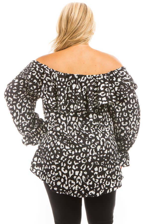 Turn heads in this sassy, leopard off the shoulder blouse!